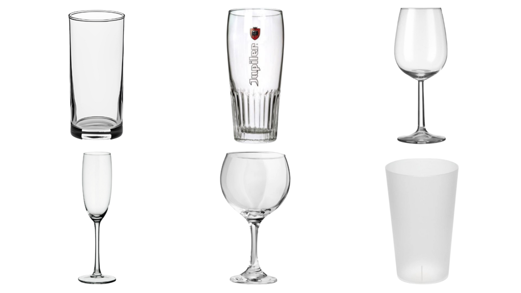 Wij zorgen voor genoeg glazen: van longdrink en bierglazen tot stijlvolle wijnglazen.