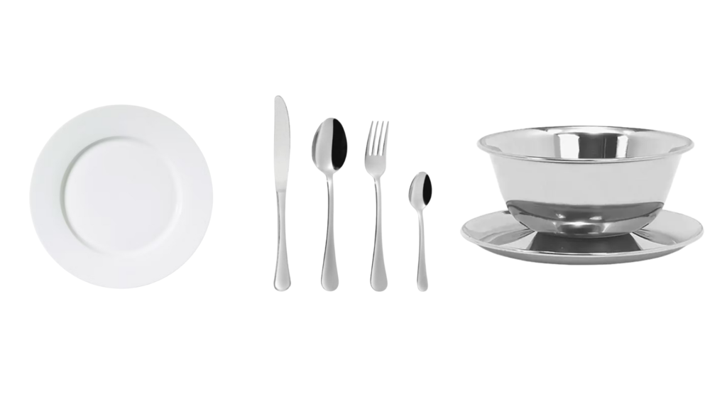 Borden, kommen, messen en vorken – alles wat je nodig hebt om zorgeloos te kunnen opdienen.