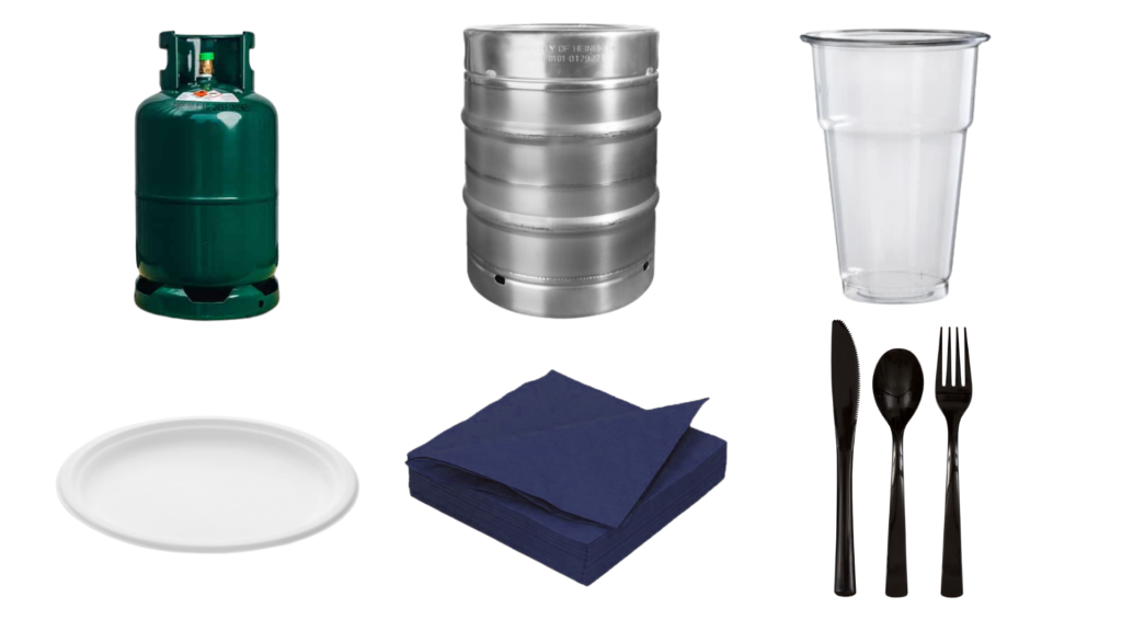 Gasflessen, servetten, bekers, borden en nog veel meer – alles wat je nodig hebt om niets te missen op de dag zelf.