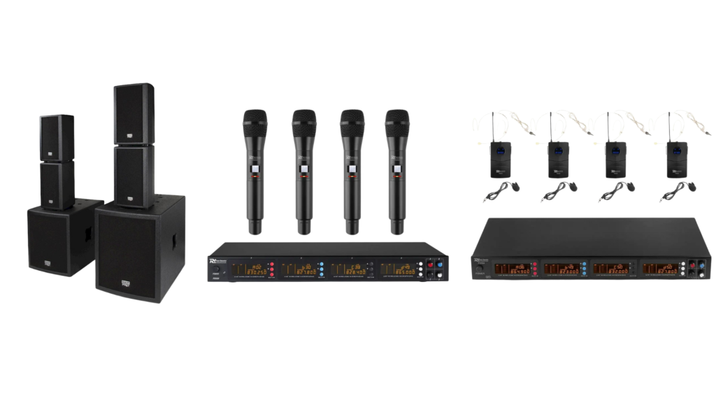Goede geluidsinstallaties voor toespraken, muziek of achtergrondgeluid, makkelijk te bedienen.
